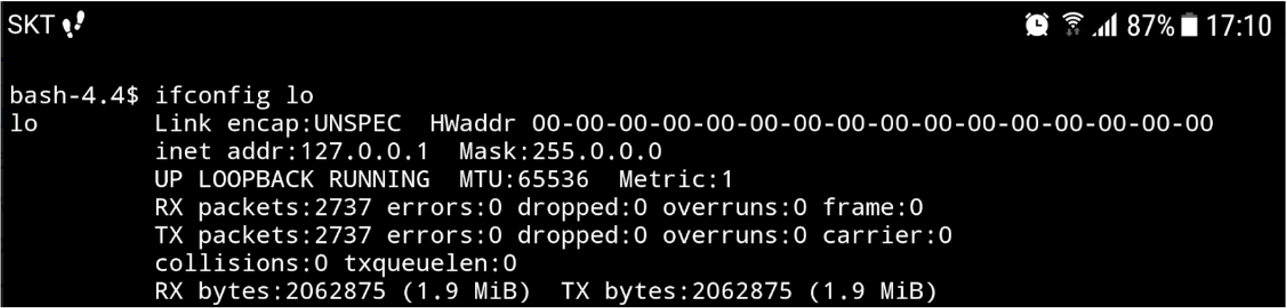 - 안드로이드 스마트폰의 로컬 룹백 인터페이스의 페이로드 칸은 64KB로 굉장히 큰 값이다. 물리적인 제한이 없기 때문에 사실 이것보다 더 크게 잡아도 문제될 것은 없다.