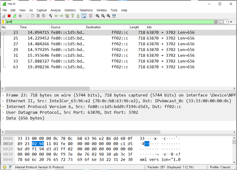 - 데이터링크 계층 프레임, IP 데이터그램 등 다양한 정보 확인 가능