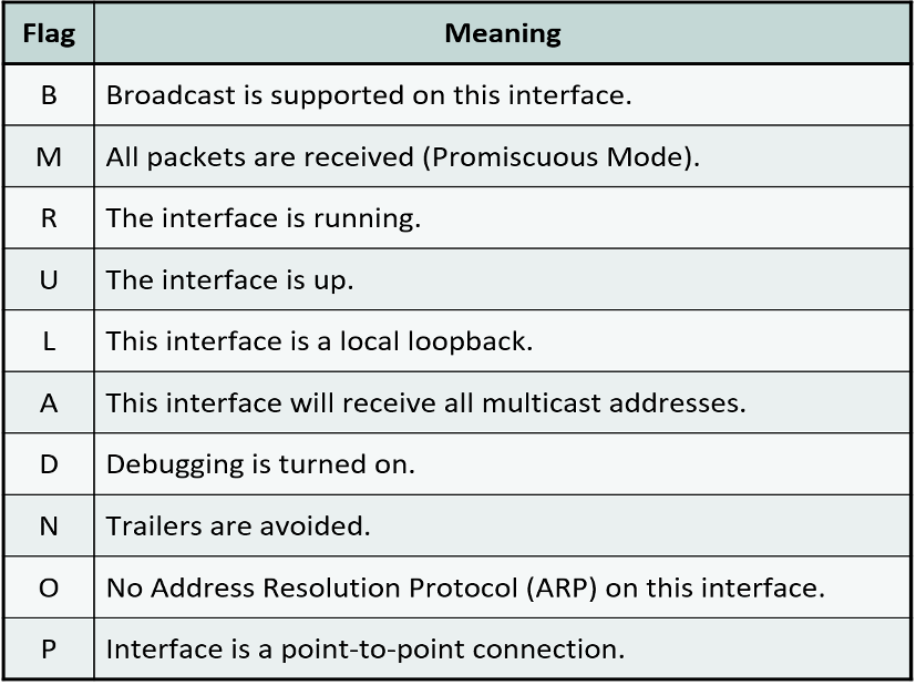 - 인터페이스 상태의 앞자만 딴 flag로 표현된다.