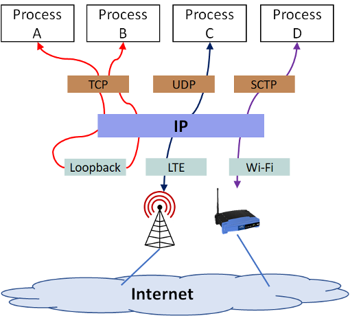- IP 프로토콜 중 TCP 프로토콜은 프로세스가 local이든 remote이든 상관없이 일관적인 방법으로 패킷을 보낼 수 있도록 해준다. 다만 이 중에서 local 프로세스로 보내지는 패킷만이 IP계층을 거친 후 로컬 룹백 인터페이스로 들어가는 것이다.