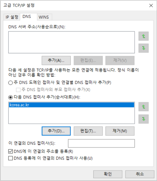 에서 접미사가 suffix이다. 즉, 워하는 도메인 네임의 label만 쳐도 알아서 suffix를 찾아 더 붙여 resolve 해주는 기능