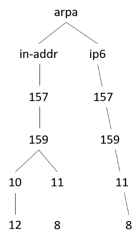 - 예) 157.159.10.12에 대한 도메인 이름은 12.10.159.157.in-addr.arpa. 라는 도메인 이름의 resource record로 저장