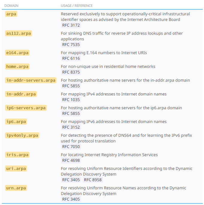 - 서브 도메인들 : in-addr, ip6, e164, uri …