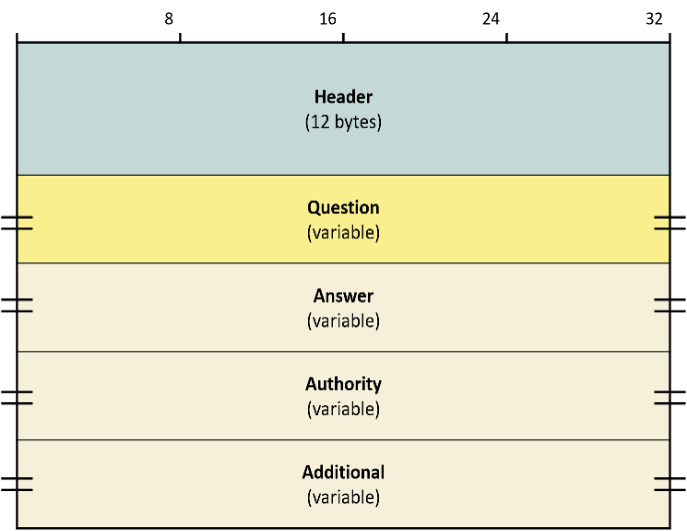 - authority (response) : 본인이 resolve할 수 없는 정보일 경우, 그 정보가 있는 다른 DNS 서버의 주소를 적어줌