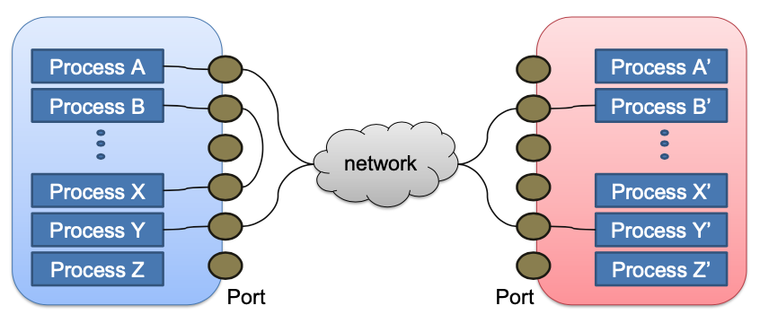 - 이 개념이 필요한 이유 : 데이터가 한 공간에서 다른 공간으로 전달될 때에는 네트워크를 거쳐야 한다. 이때 운영체제가 제공하는 Port라는 Abstraction을 통해서 데이터가 한 컴퓨터 안에 존재하는 다양한 프로세스들 중 원하는 프로세스로 목적지를 특정할 수가 있게 된다. 즉, 특정 프로세스가 다른 프로세스의 물리적인 위치를 모르더라도, Port를 보고, 데이터를 정확한 프로세스로 전달할 수가 있다.