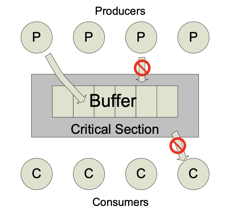 - N개의 버퍼에 여러 생산자와 여러 소비자가 접근