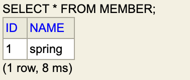 다음과 같이 실행하고 전체 조회를 하면 다음과 같이 레코드 하나가 결과로 나타난다.