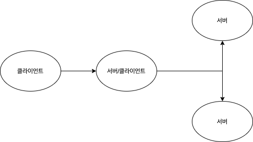 다음과 같이 동시에 클라이언트와 서버가 되어 다른 서버에게 요청할 수도 있다.